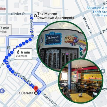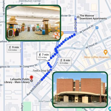 Our apartment community in Downtown Lafayette, Louisiana, is approximately 1.7 miles from the University of Louisiana at Lafayette (ULL), making it a convenient location for students and faculty. This proximity allows for a short drive of about 5 minutes to the campus.